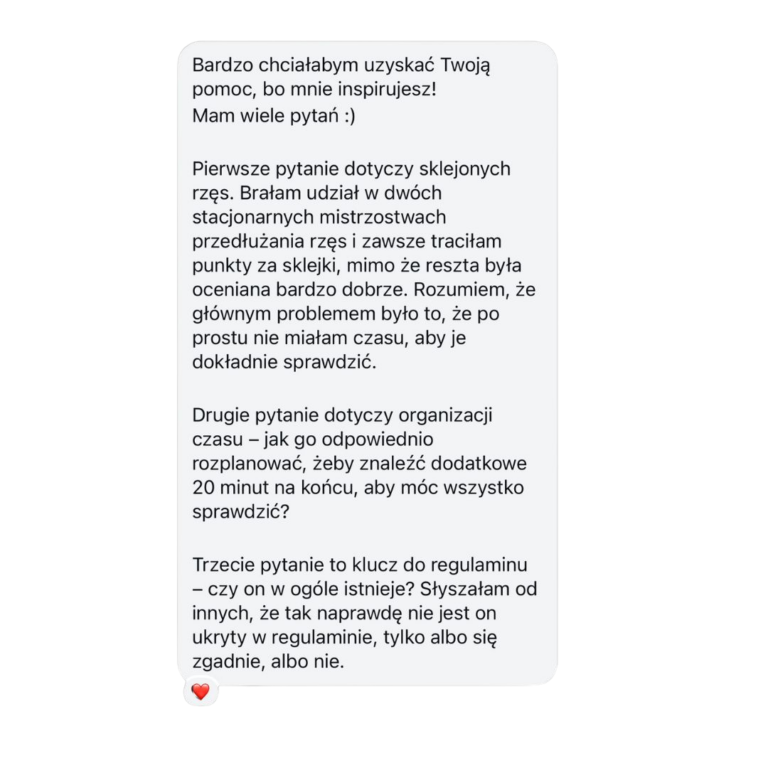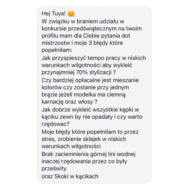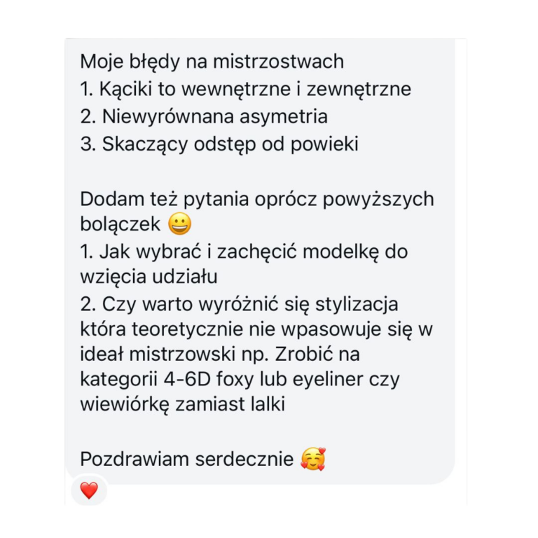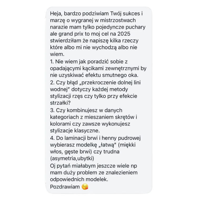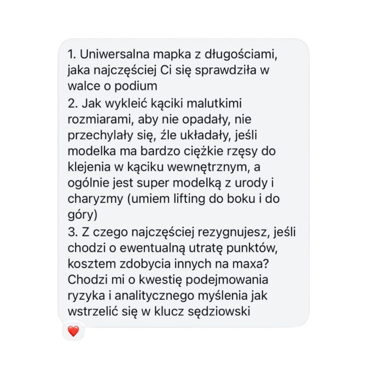 Omówimy modelki, które planujesz zabrać na Mistrzostwa – dobierzemy najlepsze modelowanie i odpowiedni kolor rzęs.